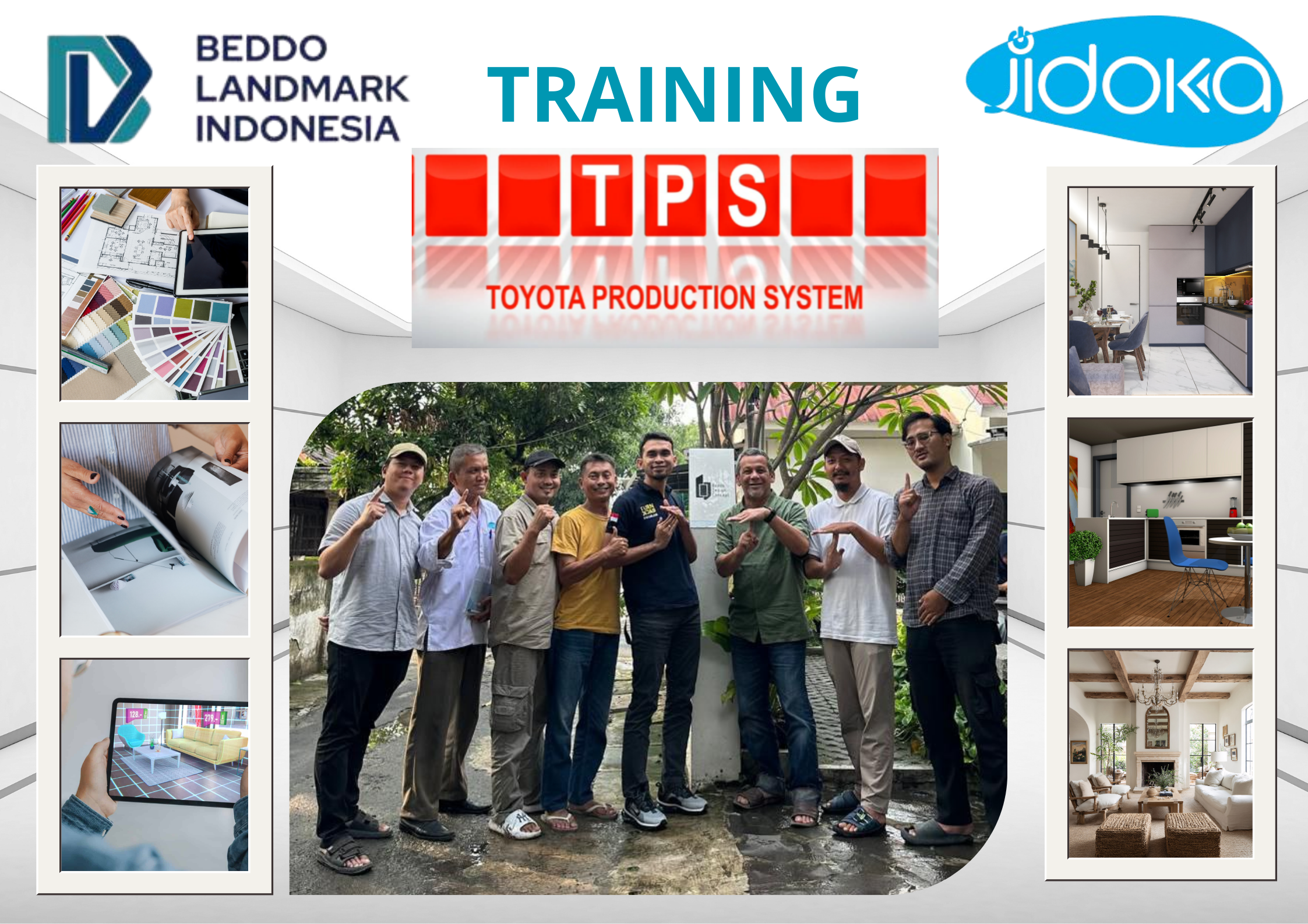 Kegiatan ini bertujuan untuk meningkatkan pemahaman dan kemampuan tim PT Beddo Landmark Indonesia dalam menerapkan prinsip-prinsip Toyota Production System, yang menitikberatkan pada efisiensi proses, pengurangan pemborosan (waste), peningkatan kualitas, serta budaya perbaikan berkelanjutan (continuous improvement).