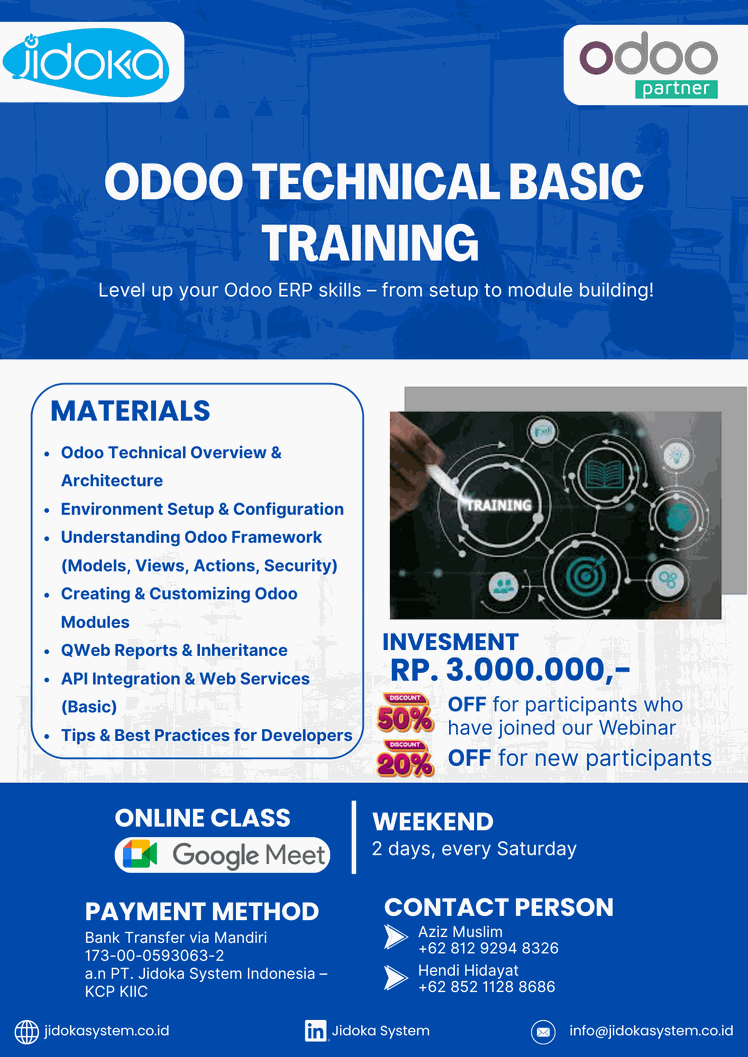 Ikuti Pelatihan development dan fungsional odoo bersama kami.