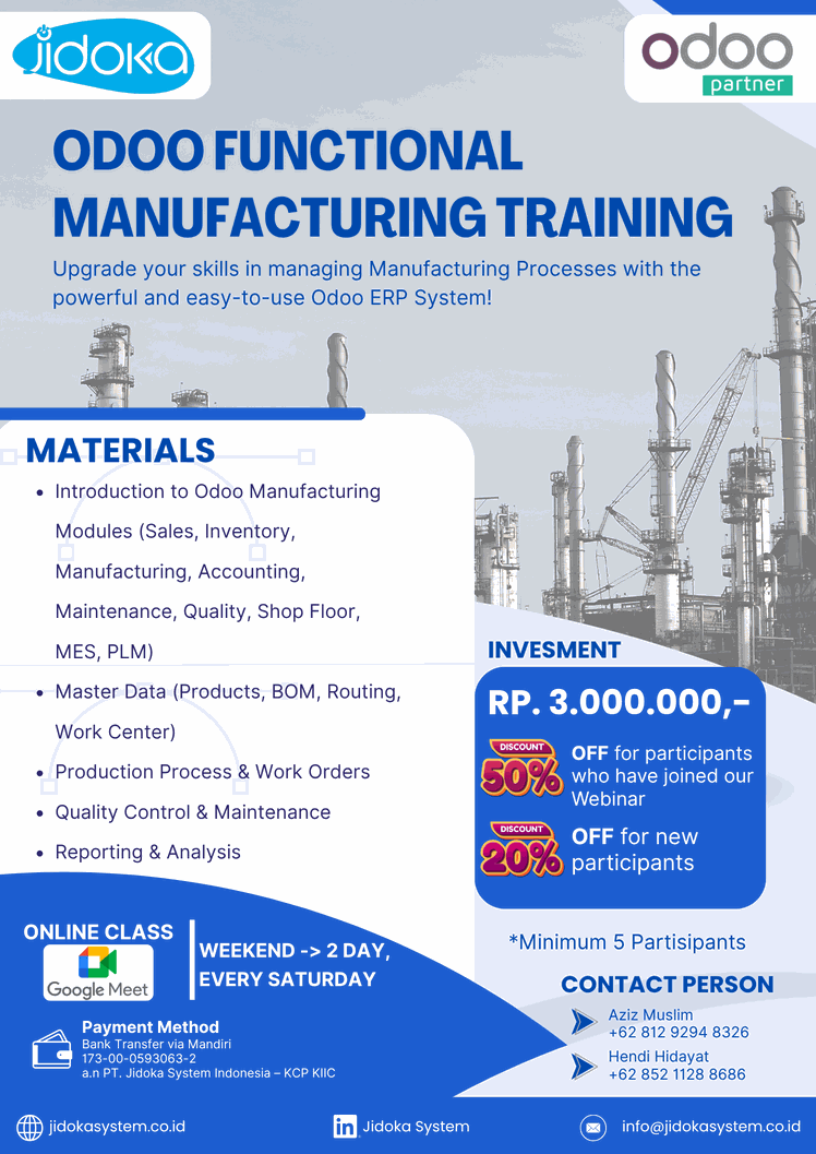 Oleh karena itu, kuasai skill fungsional odoo bersama kami, implementasikan odoo untuk perusahaan tempat Anda bekerja.